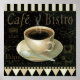© Daphne Brissonnet / Wild Apple. Uma xícara preta de café quente com um pires e uma colher de chá. As palavras francesas podem ser vistas no fundo negro.