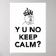 Você não vem Cara para manter calma e continuar a franquia. Apresentando o bem amado rosto de raiva Y U que se tornou um meme da internet. Ele está vestindo a coroa do Poster Keep Calm e perguntando 'Y No Keep Calm? Uma visão mais moderna do tema Manter Calmo e Continuar para a geração de SMS.