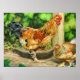 Rooster and chicken print from oil pastel original by Paxdomino.