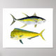 Saltwater Gamefish Dorado (Maui-Maui, golfinho) e Yellowfin Tuna de estudos originais de aquarelas realizados por artistas aquáticos, Thom Glace