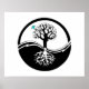Dizem que é preciso saber mau para saber o bem e o símbolo yin yang representa essa teoria. Uma árvore de design em preto e branco, com um pássaro azul sobrevoando.