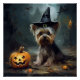 Póster Yorkshire Terrier Pumpkins Halloween Scary
