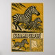 “Stampede!” captures the raw momentum of a zebra herd in motion, illustrated in a bold, vintage safari poster style. A powerful lead zebra charges forward while younger herd members follow, hooves kicking up dust across the African plains. Dynamic speed lines and textured golden tones amplify the sense of movement, giving the piece a mid-century adventure print aesthetic. Supporting panels add visual storytelling elements, reinforcing the rhythm, landscape, and migratory energy of the scene.
