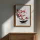 Uma cena pacífica de um barco solitário flutuando suavemente em um lago calmo, com delicadas flores de ameixa vermelha penduradas acima — pintadas no estilo tradicional de lavagem de tinta. Este trabalho de arte minimalista evoca serenidade, reflexão e harmonia com a natureza. Perfeito para aqueles que buscam calma em seu espaço pessoal.