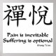 Kanji para a alegria de Zen com o provérbio budista de Zen, "A dor é inevitável, o sofrimento é opcional".