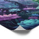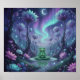 This fantasy poster features a Serene frog meditating on a lily pad under a crescent moon, surrounded by glowing purple lotuses and aurora-lit sky in an enchanted forest reflection.