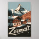 Zermatt retro vetor viagem design. Zermatt, no cantão de Valais, na Suiça meridional, é um porto de montanha conhecido por esquiar, escalar e caminhar.
