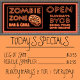 Personalize este sinal com sua própria comida zombie. Procure o resto da linha Zombie Zone no resto deste compro.