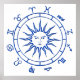 Posters de astrologia com símbolos bodiques. Cor branca e azul.