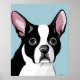 Dog art apresentando Boston Terrier em posters e impressões com a opção de escolher o tipo de papel que vai de poster a impressão de arte fina com enquadramento personalizado online disponível.