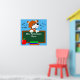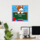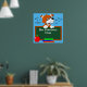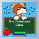 Poster de sala de aula primária personalizada de um cão de desenho animado segurando um quadro impresso com o nome do professor. Maçã e livros em frente à lousa. Personalize o texto e a cor do plano de fundo.