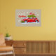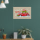 Posters de Feliz Natal, com uma bela ilustração de um carro festivamente decorado com galhos de abeto e caixas com presentes no telhado.