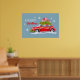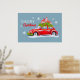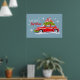 Posters de Feliz Natal, com uma bela ilustração de um carro festivamente decorado com galhos de abeto e caixas com presentes no telhado.