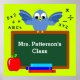 Personalize este poster de sala de aula personalizada de um quadro animado de pássaros azuis feliz com o nome do professor e a maçã e livros em primeiro plano. Irá iluminar qualquer classe de ensino fundamental. A cor de fundo também pode ser alterada.