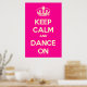 Com base no original "Manter Calmo" e ... poster, este creme e o poster "Manter Calmo e Dança em Rosa" apresentam uma fonte personalizada que corresponde ao original.