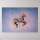 Um dramático cavalo carrossel preto com armadilhas em tons joias de azul real, vermelho profundo, rochas e acentuado com rosetas cor-de-rosa esculpidas. Sinta-se livre para personalizar sua compra para torná-la sua.