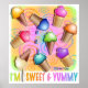 Legal com esses coloridos cones de sorvete-arte num arco-íris de sabores e um fundo cremoso de pastéis de xerez. Perfeito para um salão de sorvete, quarto ou cozinha de criança. Qualquer legenda na imagem é separada! Basta remover essa imagem e adicionar seu próprio texto personalizando suas compras!