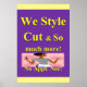 Beauty Salon, Barbershop, Nail Salon, Tanning Salon Posters. Promoção de cortes de cabelo para extensões de unhas e todos os serviços de beleza e barbeamento.