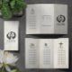 Instrutor de Meditação do Yoga Studio Moderno / Treinador de Vida / Healer / Mestre de Reiki / Modelo de Brochuras Triplas de Massagem - Imagem de Ioga de Caligrafia Branca e Preta Elegante / Dose Fácil / Dose Sukhasana com Símbolo ZEN e Folha Bodhi no Fundo da Madeira Branca de Vintage. Fácil de personalizar com seu próprio texto e imagens - torne-o seu.