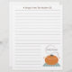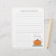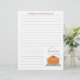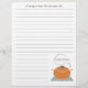 Receba papel com linhas opcionais, que podem ser removidas. Parte inferior apresenta uma ilustração de um pote cozinhar laranja com alças e tampa. O pote está sentado sobre uma superfície azul e branca e tem vapor vindo de baixo da tampa. O texto de cima diz "Uma Receita Da Cozinha De..." Personalize com seu nome acima do pote na parte inferior. Procure o classificador de receita correspondente (abaixo.) com