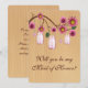 O dia perfeito de toda noiva inclui suas amigas. Quem você confia para dar um discurso e realizar tarefas como ajudá-la a escolher os vestidos das damas de honra para que o plano do seu casamento ocorra sem problemas? Seja sua irmã responsável, prima, sobrinha ou melhor amiga, este convite "Você será minha Dama de Honra" é uma maneira divertida de perguntar. Personalize o cartão alterando o texto nos campos fornecidos. Você pode alterar o estilo, tamanho e cor da fonte, tipo e estilo de papel.