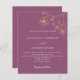 Um convite de casamento moderno, elegante e minimalista. Uma ameixa, fundo cor-de-roxo, decorado com falsos florais de ouro. Personalize e adicione seus nomes e detalhes do casamento.