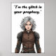 A bold Powerless-inspired quote poster featuring the line “I’m the glitch in your prophecy.”