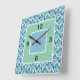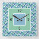 Este relógio de parede quadrado apresenta um padrão tribal geométrico. As cores são azul, verde e branco. Este padrão é baseado em um padrão de azulejo. Estilo: Relógio de Parede Acrílico Quadrado de 10,75" Personalize seu relógio de parede para criar uma peça de declaração de decoração de parede funcional que corresponda perfeitamente à sua decoração doméstica, exiba sua arte ou foto favorita, ou dê como presente personalizado. Esse relógio exclusivo de parede de alta qualidade é impresso vibrantemente com o processo AcryliPrint®HD e apresenta um slot pré-instalado de backside para facilitar o enforcamento e um design não-encaixante. Tamanho: 10,75 pol L x 10,75 pol H Material: bateria de nível A necessária (não incluída) Adicionar fotos, trabalho de arte e texto Uso interno, não recomendado para uso no exterior