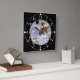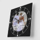 Este elegante relógio de fotos personalizado quadrado é perfeito para sua foto favorita de casamento ou outra foto especial. Há uma seção no centro para você adicionar sua própria imagem. Basta substituir a imagem de exemplo no modelo por sua. Diz, "Feliz 25 Aniversário" em letras brancas, mas você pode mudar isso para dizer o que quiser, na modelo. Substitua as palavras do exemplo. O relógio tem pontos brancos para os minutos e horas, e números de cinzas leves, em um fundo preto. Parece bonito com uma foto em preto e branco. Excelente para um presente de aniversário de prata para celebrar seu vínculo especial. Adicione seus nomes e data no modelo para personalizar o relógio. Clique em personalizar para alterar o estilo ou a cor da fonte dos números se quiser personalizá-lo. Mais relógios de parede personalizados no Lápis da Alina.