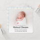 Esta design apresenta um minimalista simples para bebês, com um modelo de fotografia listrado azul, um azul pastel claro e pálido, com estatísticas de natalidade anúncio de bebê, um modelo de layout de foto de sangria de cheio, um design mínimo simples, um anúncio de foto de uma menina fofa, uma fonte de tipografia de na moda, um design de layout de imagem de bebê simples, um anúncio de menino azul-claro e simplista