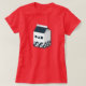 Camisa feminina com uma caixa de leite do jogo. Com um círculo, triângulo e padrão quadrado