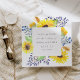 Nossos campos de flores salvam os quadros do cartão de data, seus principais detalhes de casamento, incluindo data e local, dentro a exuberante borda floral de girassóis amarelados rústicos, folhagem verde e pequenos botões azuis de flor silvestre. Personalize com seus nomes, data do casamento e local usando os campos fornecidos.