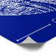 This artwork features precise white linework on a deep blue background, highlighting the historic yet structured urban layout of Prague with clarity and balance.