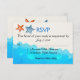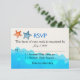 Praia com Estelar Casamento RSVP. RSVP de casamento de excelente para casamentos de praia ou destino. Uma praia arenosa, ondas suaves e dois estrelas-do-mar simbolizando a Noiva e o Groom pelo seu convite personalizado. Convites, Obrigado e produtos de casamento adicionais disponíveis.