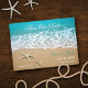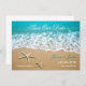 Este cartão moderno é ideal para anunciar um Casamento de Praia ou Destino. Ele mostra uma bela foto de uma praia com areia e dois estrelas-do-mar. Este cartão é ideal para um casamento na frente do oceano. Adicione seus próprios detalhes de evento.