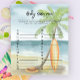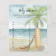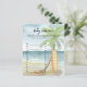 Convite de chá de bebê a bordo! Perfeito para um chá de bebê de verão. Tema de praia. O design de aquarela tem uma cena de oceano e praia com prancha de surf, palmeira e chapéu de verão.