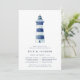 Nossos convites para o janto de ensaio cômico costeiro apresentam uma ilustração azul e branca de um farol de aquarela, com seu ensaio de cerimônia e detalhes de janto abaixo em marinho azul. Convites inversos a azuis marinho náutico sólido.
