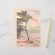 Esta é uma bela cena de praia do estilo vintage com tons de sol de coral e palmeiras verdes. Há um nome de exemplo que segura o lugar para você adicionar o seu. A parte de trás é uma sombra de cor-de-rosa pálido. #paraíso #tropical #palmtree #Beach #ocean #sunrise #personalizado #papel de escrita