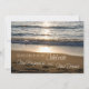 Elegantes convites para renovação de promessas de casamento que incluem uma bela fotografia das ondas que caem na praia ao pôr do sol com texto totalmente personalizável para incluir os detalhes da sua cerimônia de renovação de votos.