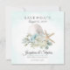 Linda floral com estrelas e dólar de areia, casamento na praia de destino Salve o anúncio da data. Guardar a data sem fotos minimalista, inclui informações sobre a data do casamento, a cidade e o estado e o site do casamento. Muito espaço no verso para fotos de noivado e informações adicionais, se preferido.