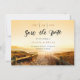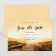 Este elegante cartão Save the Date apresenta uma imagem quente de uma praia no pôr do sol. A cena calmante apresenta um caminho cercado que leva ao oceano. A paleta de cores quentes a torna ideal para uma celebração de Primavera, Verão ou outono. Este design de na moda irá dar o tom para um evento confortável e inesquecível.