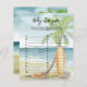 Bebê no Conselho! Chá de fraldas - perfeito para um chá de fraldas de verão. Tema da praia. A design de aquarela tem uma cena oceânica e de praia com surfboard, palmeira e chapéu de verão.