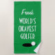 Toalha de golfe engraçada para o golfe mais bonito do mundo. Toalhas de praia personalizadas com tipografia ousada e design de bola de golfe. Legal acessórios de verão para praia, viagem ou piscina. Cores personalizáveis. Perfeito para Dia de os pais, Natal ou Aniversário! Faça um para um amigo de golfe, amigo, melhor pai, o maior pai do mundo, filho, irmão, amigo, avô, namorado, colega de trabalho, irmã, filha, tio, carregador, instrutor etc. Desenho bonito com o buraco e bola de golfe caindo na borda.