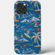 Padrão de ilha tropical azul com ilustração de desenho animado turístico
