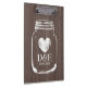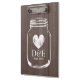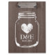 Prancheta chique do casamento do frasco de pedreiro do país rústico. O conselho de grampo de madeira do painel da grão de Brown para o planejador wedding/planeamento. Monograma de Personalizable com letras iniciais dos namen dos noivos mais a data do casamento. Design monogrammed do vintage bonito para o jardim do verão/celeiro que wedding em julho, august, setembro exteriores etc.