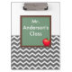 Keep organizou no estilo com do quadro cinzento de Chevron dos professores uma prancheta feita sob encomenda personalizada que caracterizasse um teste padrão cinzento do quadro de Chevron com um quadro e uma maçã. O quadro diz atualmente a classe do Sr. Anderson. Personalize com seu nome ou todo o texto que você goste. Se você precisa a ajuda que personaliza este produto, contacte-me por favor através de minha loja e eu estarei feliz ajudar! Muitos produtos de harmonização estão igualmente disponíveis em nossa loja. Impresso em dois lados. Sustente papel ao ½" firmemente.