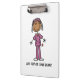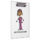 Uma grande prancheta para enfermeiras, características uma enfermeira fêmea do afro-americano em um uniforme roxo com estetoscópio e uma área que você pode personalizar ou deixar o vazio.
