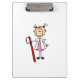 Uma figura bonito dentista da vara ou a prancheta do design do assistente dental caracterizam uma figura fêmea dentista da vara com uma escova de dentes vermelha grande!