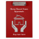 Pranchetas feitas sob encomenda do avaliador dos bens imobiliários com imagem de um símbolo e de um texto que da casa você pode personalizar em ambos os lados neste design inteligente simples do modelo. Projetado para um serviço home da inspeção, umas avaliações home, ou umas outro o serviço relacionou-se às matérias residenciais.