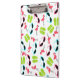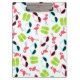 Uma prancheta que caracteriza um teste padrão temático do verão com ilustrações de flamingos cor-de-rosa, de chinelos, e de óculos de sol retros do olho de gato.